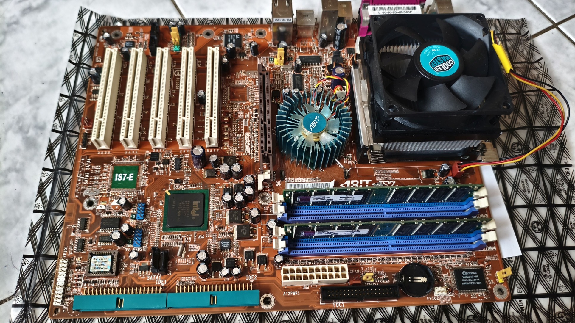 Eladó egy Abit IS7-E v1.2 s478 alaplap I/O shiled-jével, Intel Pentium 2.6 GHz processzorral.