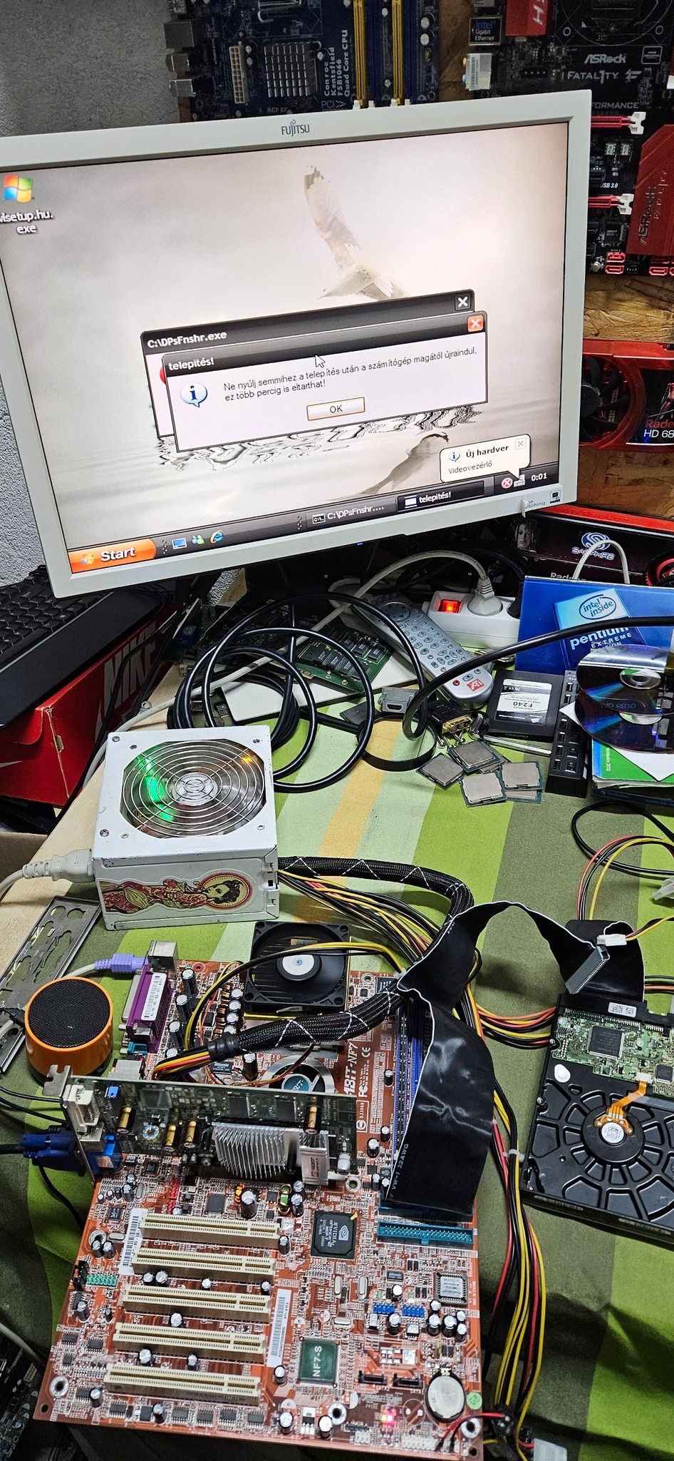 Az alaplap szép állapotban, nincs rajta púpos kondi, ventilátora is csendes, ami a proci (AMD Athlon XP 2000+) hűtéséről nem mondható el mert az bár könnyedén forog, de elég zajos... 512mb ram is jár hozzá, illetve a hátlapi takarólemez. Igény esetén a vételár magába foglal egy friss pasztázást is.