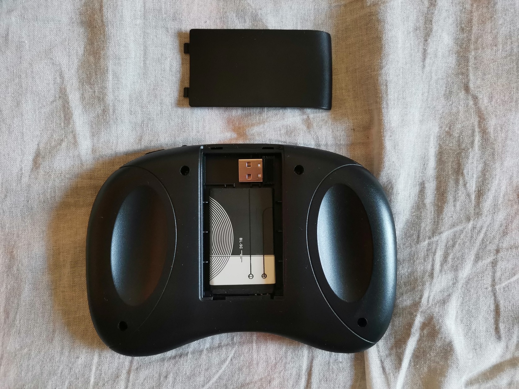 - érintőpados-billentyűzetes távirányító USB-s vevőegységével, Nokia BL-5C-kompatibilis akkumulátorával és microUSB töltőkábelével (utóbbi sajnos lemaradt a képről)