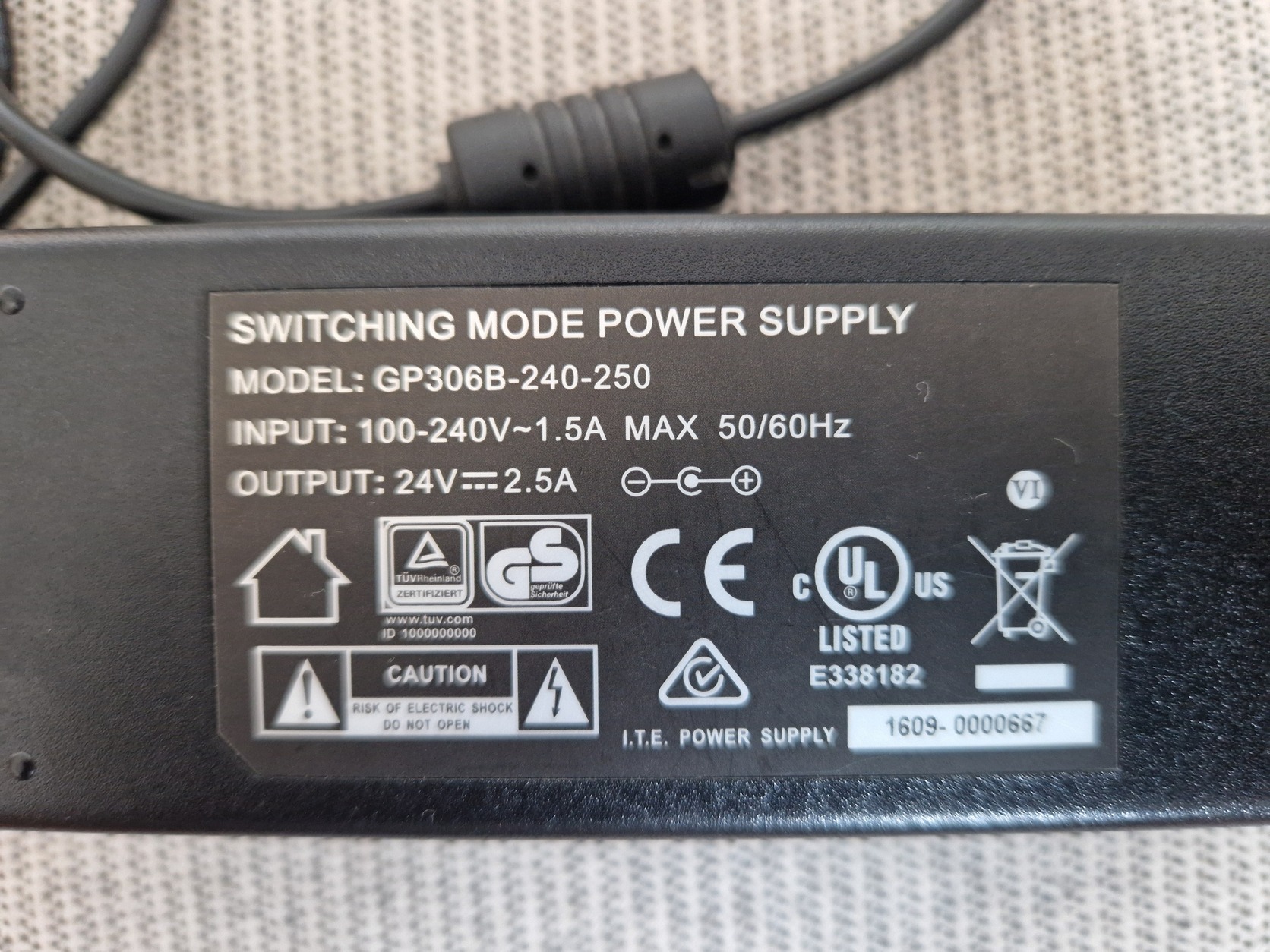 AC/DC Adapter for Model: GP-306B-240-250