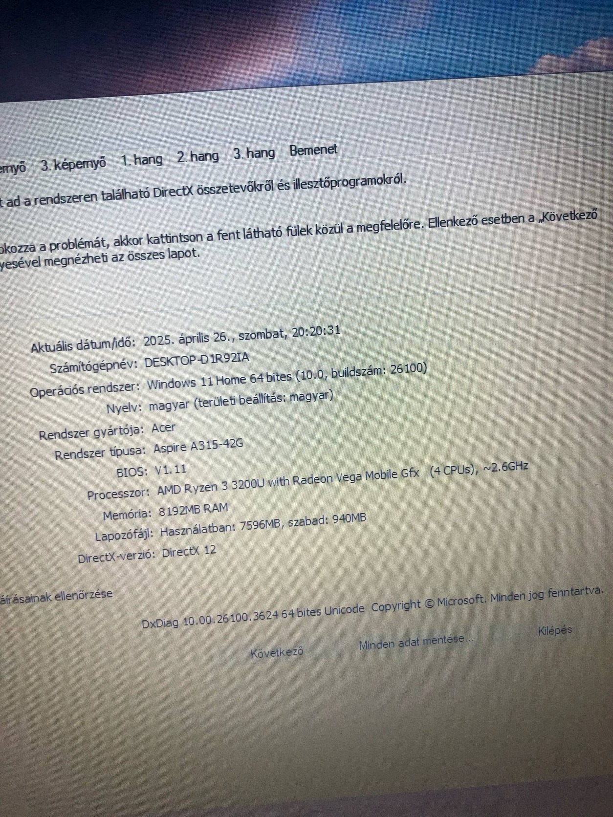 Eladó Acer Aspire 3 A315-42G tipusú laptop!