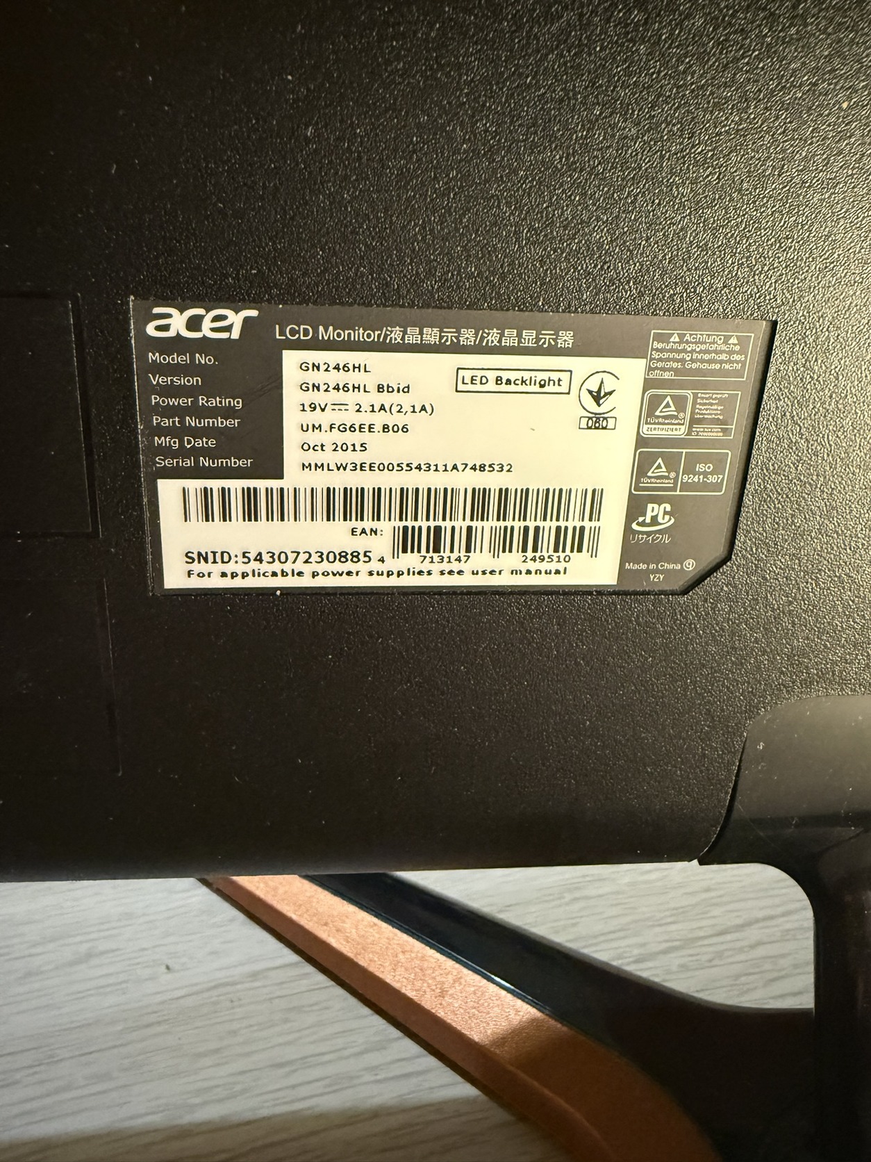 Acer 144hz 24" 1920x1080 monitor