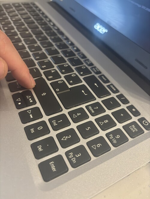 Karcos fedlap, karcos szélek, Jobb oldali shift nincs megfelelően a helyén, mechanika hiányzik, nem esik ki, csak billeg.