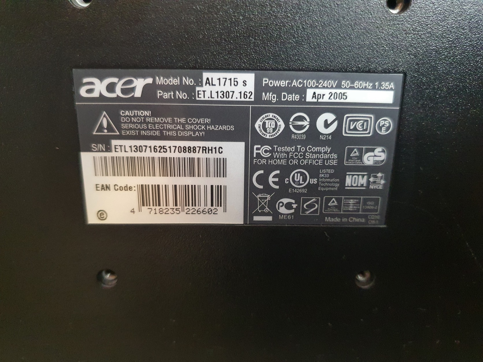 Acer AL1715S hibátlan monitor