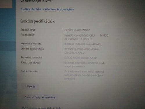 Képen látható config, Core i5 m450, 8gb ram, 320gb hdd, windows 10, korának megfelelő állapotban