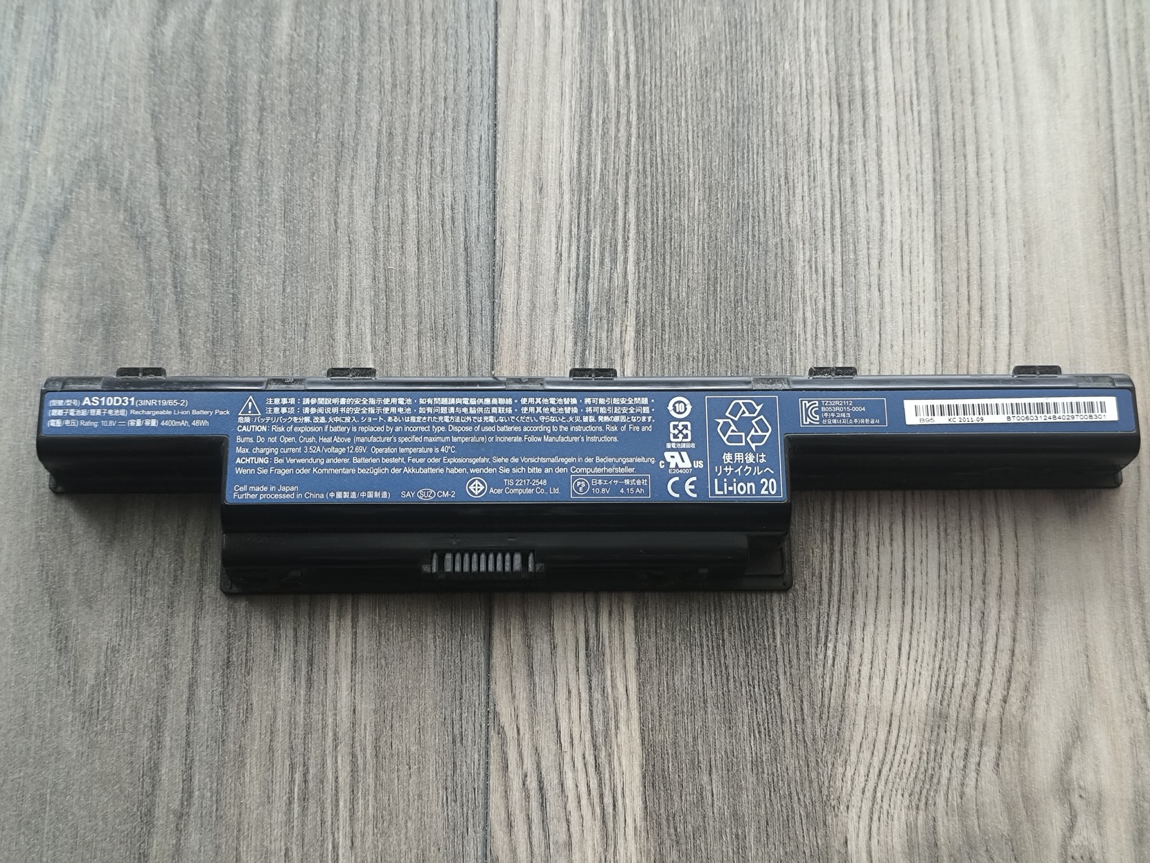 Akkumlátor: 10.8V, 4400mAh, 48Wh, 6 cell (AS10D31) ismeretlen élettartam.