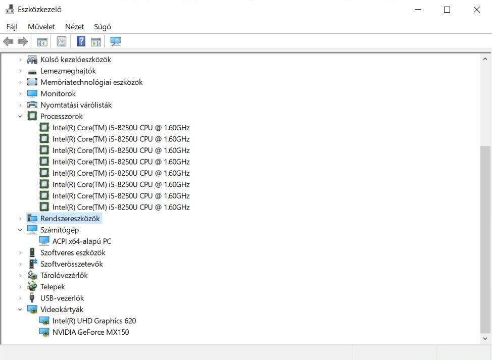 Processzor: I5 8250u 4mag 8 szálas processzor 3.4ghz