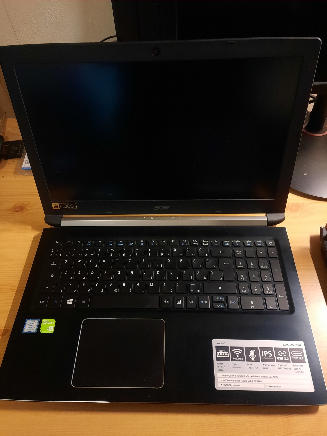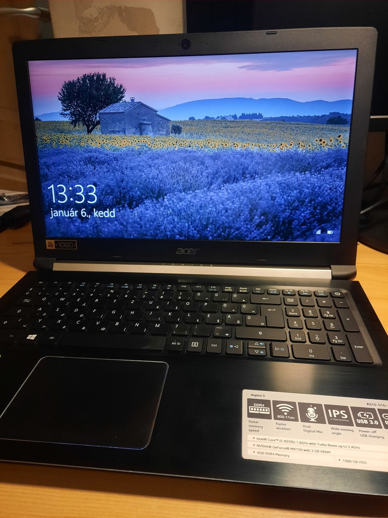 - fehéren világító billentyűzet,nagy touchpad,fémes fedlap