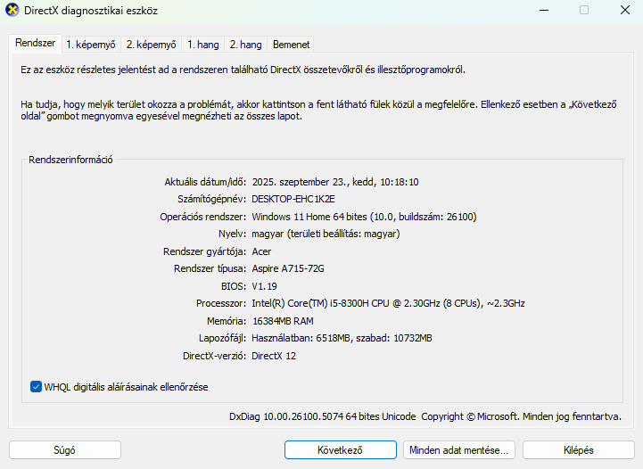 Az alap 8GB RAM ki lett cserélve 16-ra, illetve az alap 1TB HDD-hez lett dobva egy 250GB-os M.2 SSD.