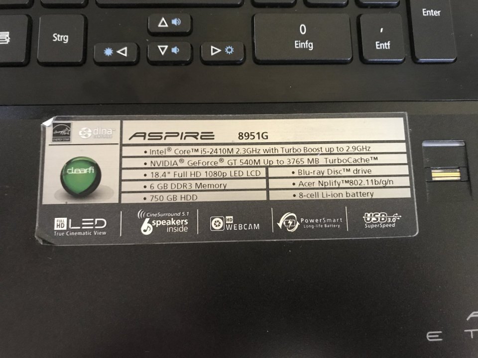 Acer Aspire 8951g 18,4" (i5, 6Gb Ram, világító bill.)