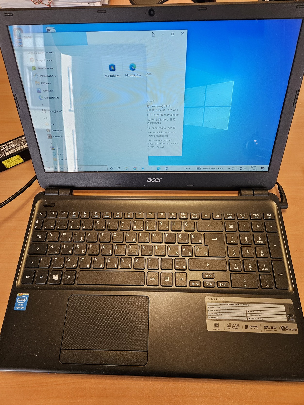 Acer Aspire E1-510 35204g50mnkk Pentium N3520, 4GB DDR3L RAM, 0GB HDD szép állapotban töltővel