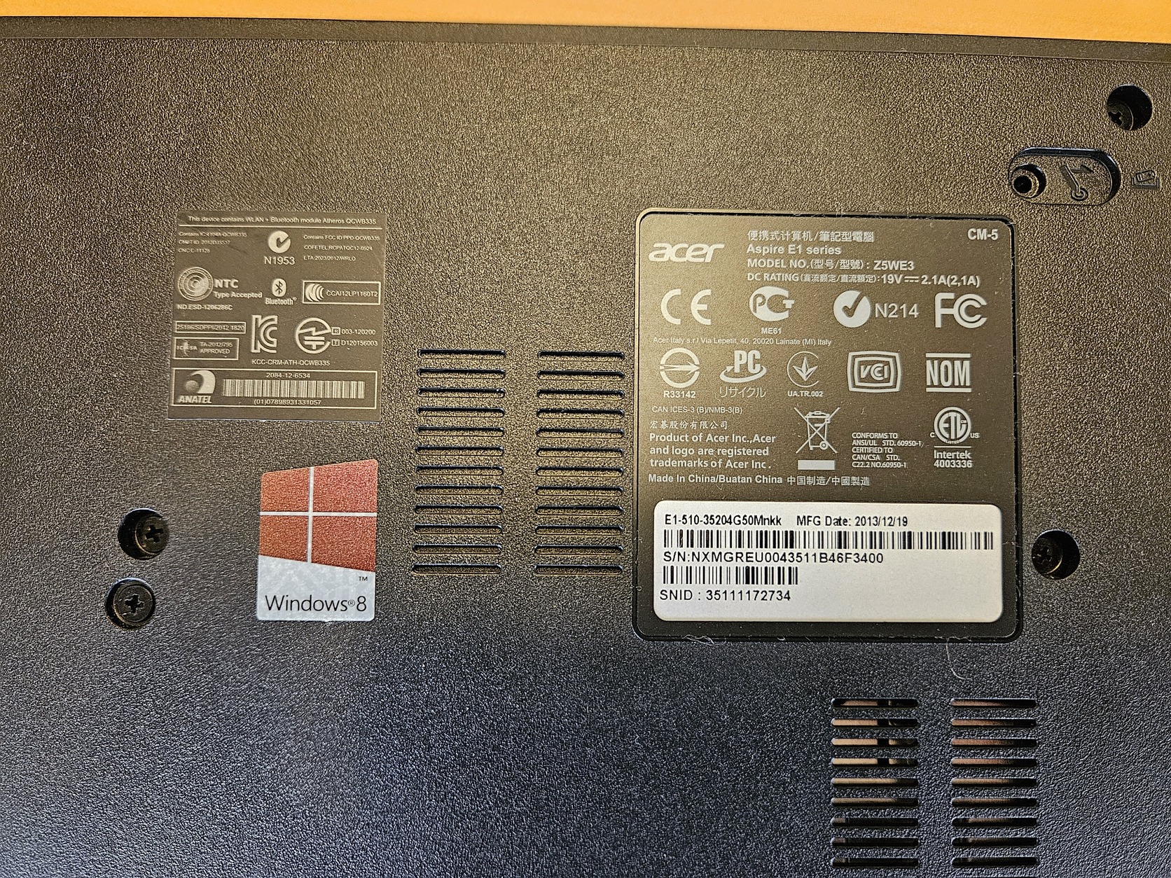 Egyéb: WI-Fi, Bluetooth, webkamera. Win8 matrica van az alján.