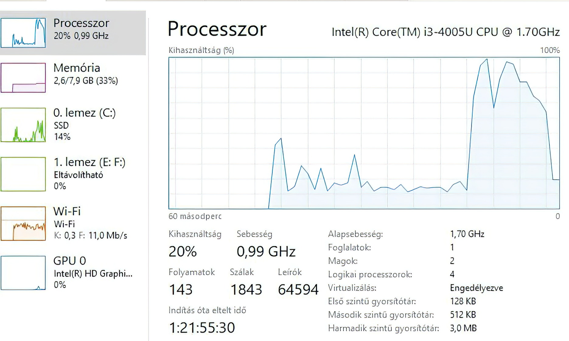 Processzor típusa: Intel Core i3, 4005U