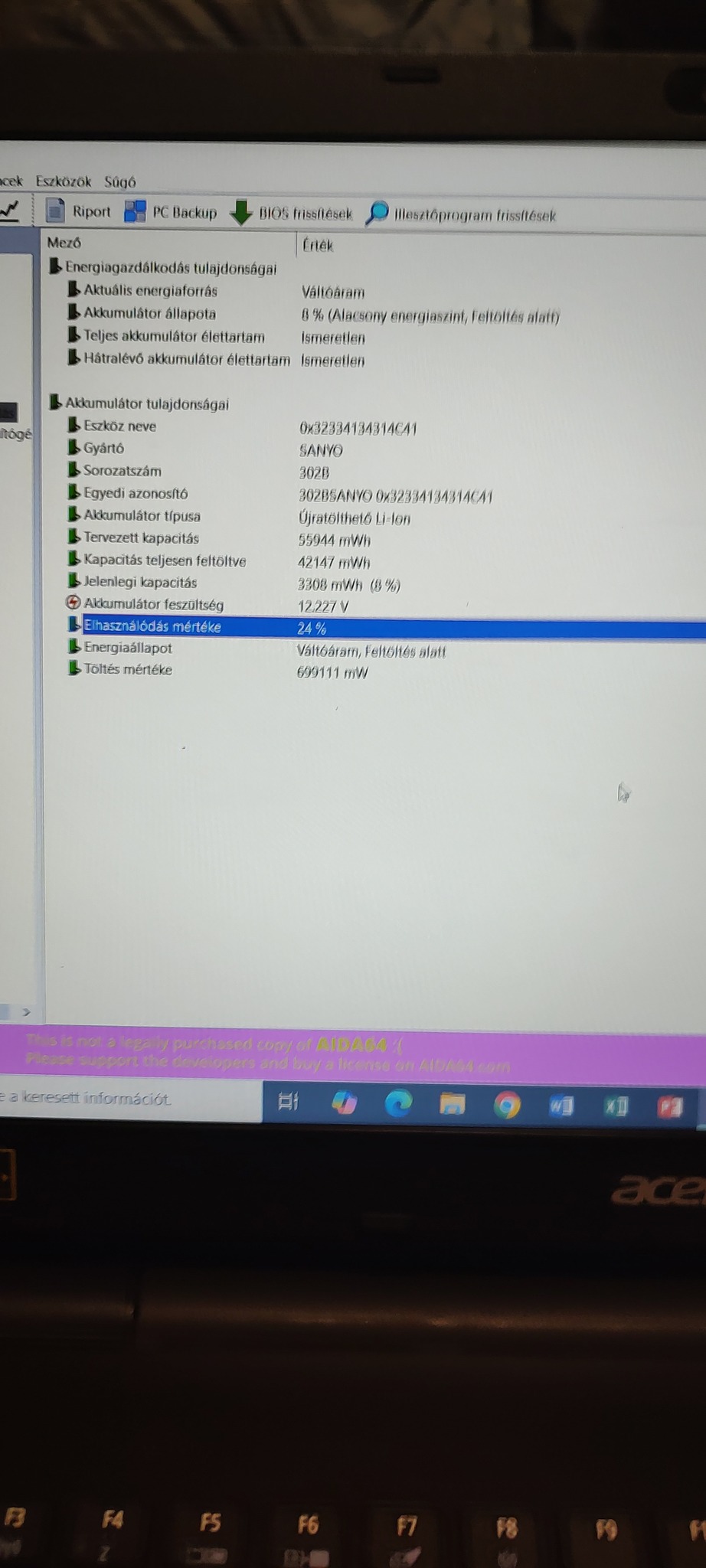 Akku kb 2óra+töltő