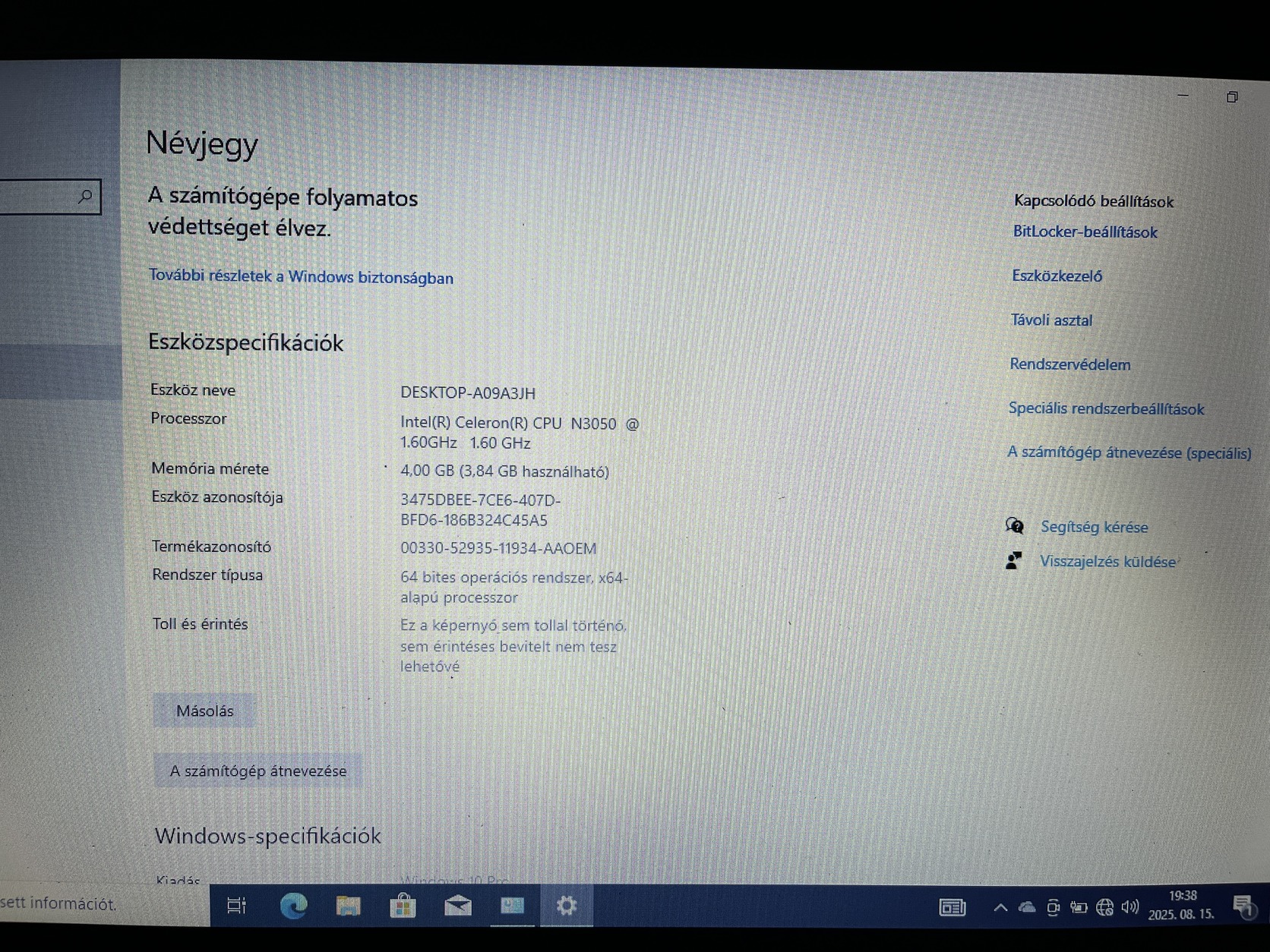 Eredeti licenszkulcsal rendelkező windows 10Pro 64bit rendszer van rajta.A kulcsot adom hozzá.