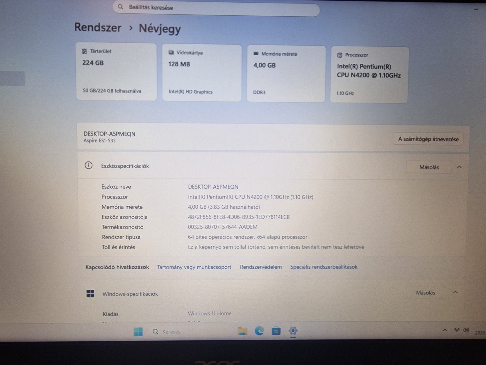 Acer Aspire ES1 15 notebook türelmeseknek