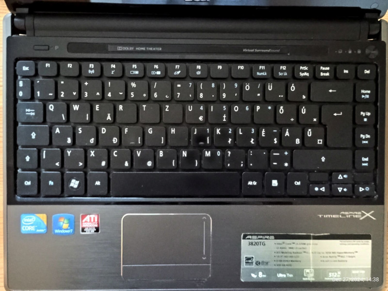 Acer Aspire TimelineX 3820TG - i3 CPU, 8GB RAM, 120GB SSD, Intel+AMD VGA, Win10H, dobozos