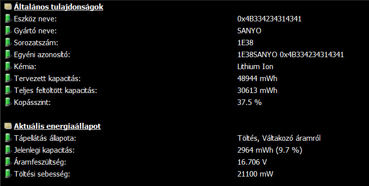 - Akku: 38%-os elhasználódás, kb 2-4órát bír felhasználástól függően.