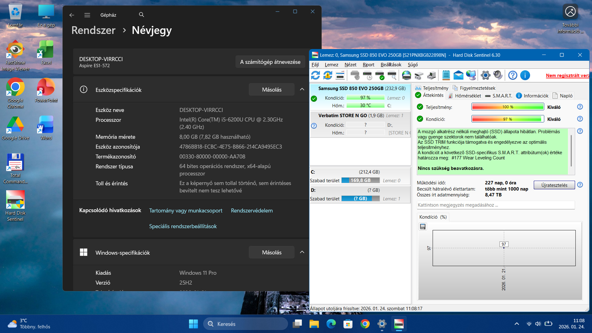 - Samsung EVO 850 250GB SSD 100%