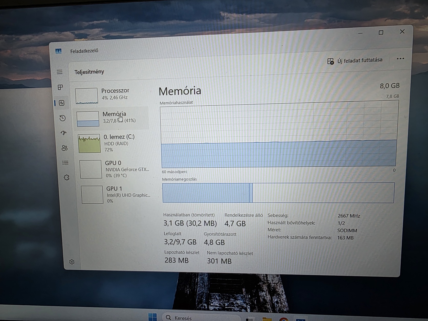 Processzor: Intel(R) Core(TM) i5-9300H 2.40GHz