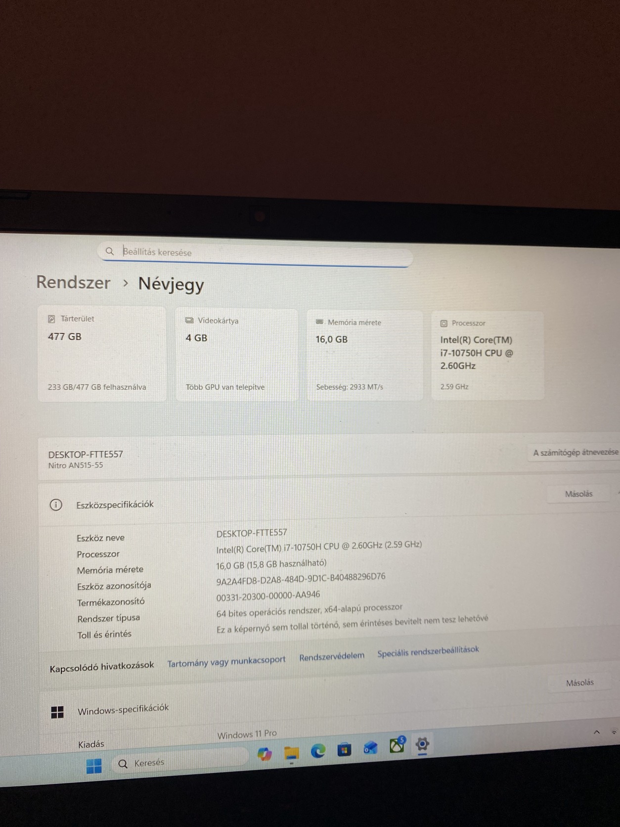 i7 10th generációs 16gb ram gtx 1650 ti és egy 500gb ssd