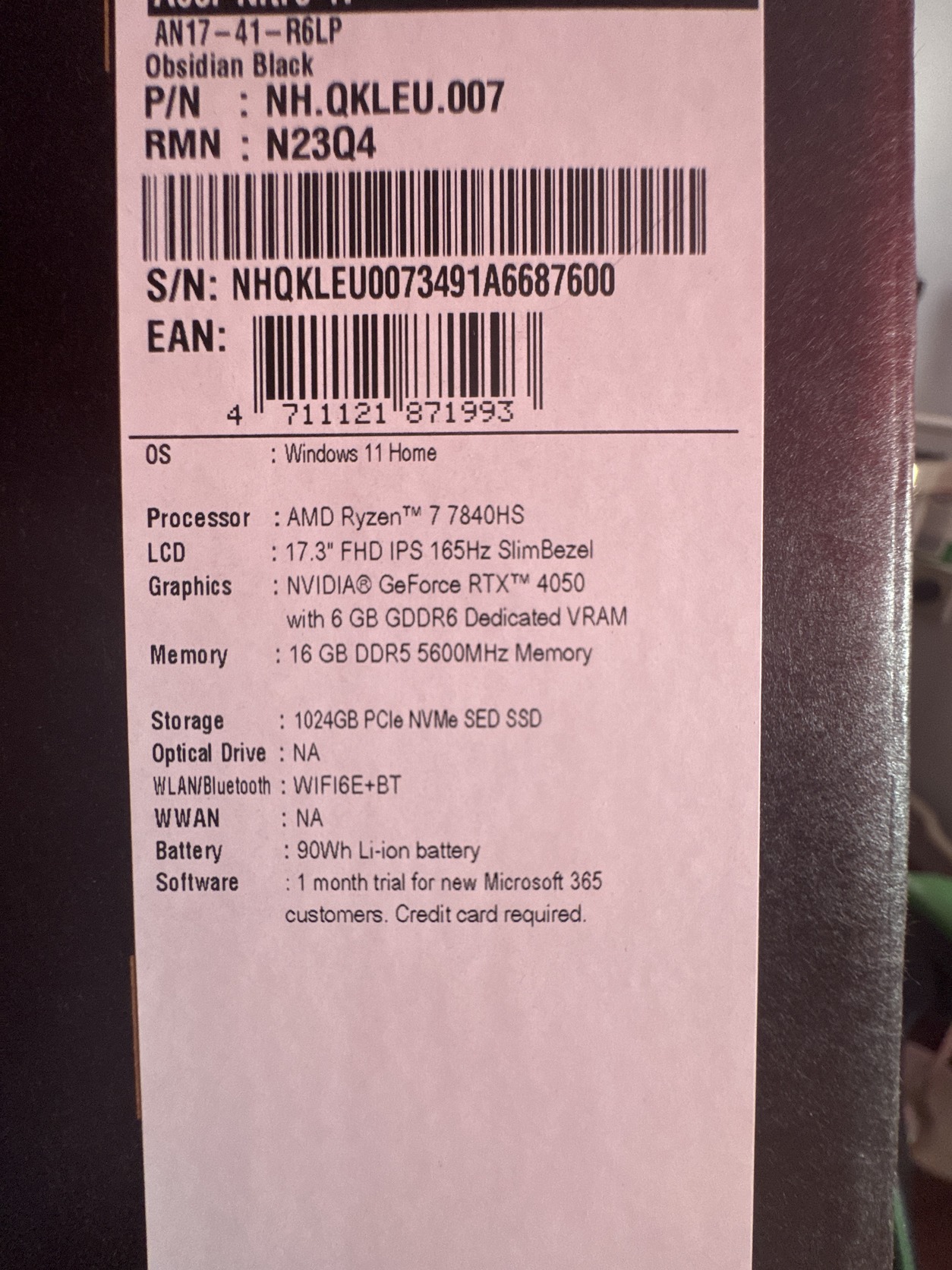 Eladó: Acer Nitro AN17-41-R6LP gamer notebook (újszerű, dobozával, minden gyári tartozékkal).