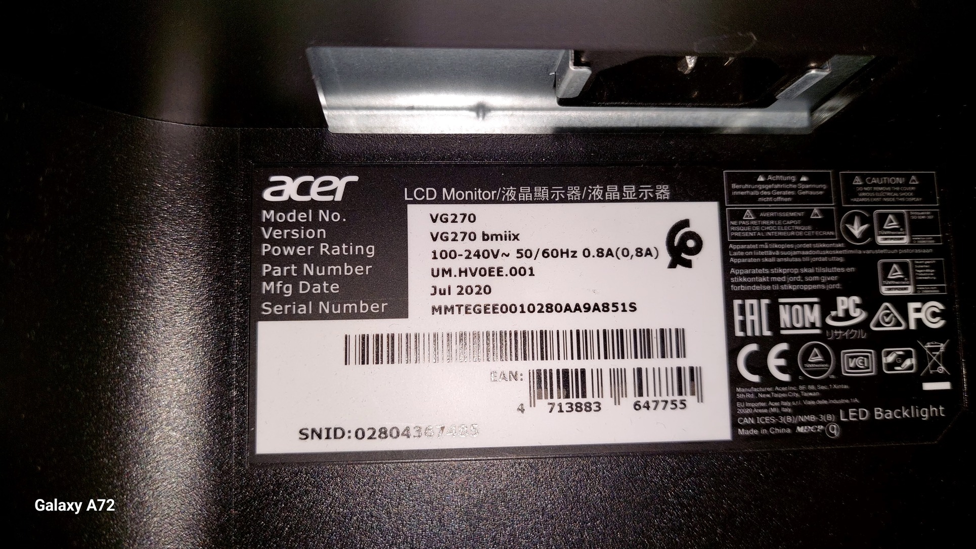 Eladó Acer Nitro VG270UGbmiipx monitor, betört képernyővel, alkatrésznek.