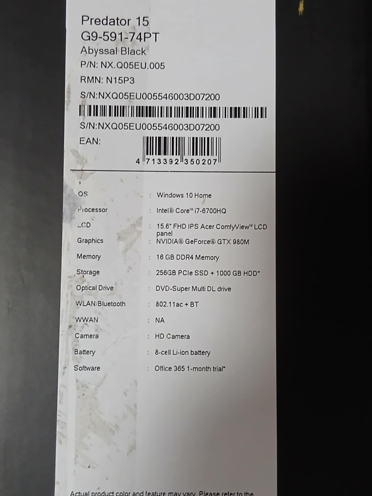 Acer Predator 15 (G9-591)