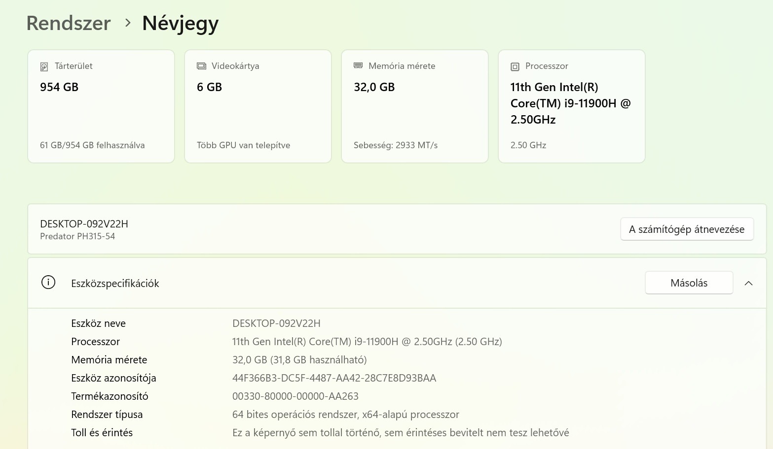 Processzor: Core i9 11900H