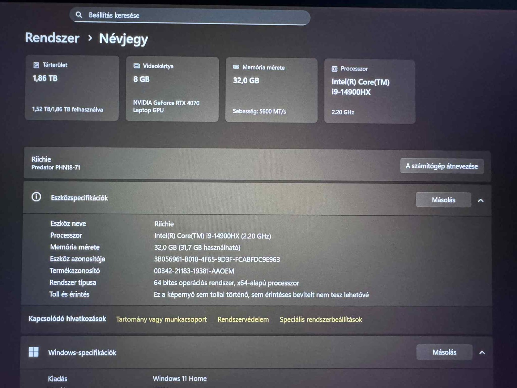 Eladnám fent említett 2éve vásárolt, használt szeretett Acer Predator Helios Neo (PHN18-71) típusú laptopom.