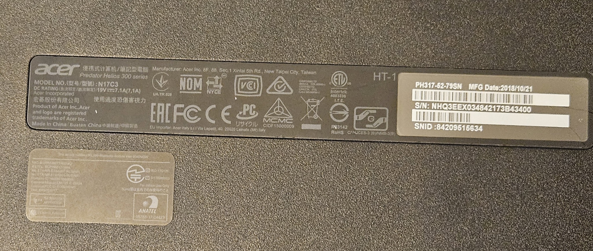 Eladó Acer Predator Helios 300 PH317-52-79SN HIBÁS!