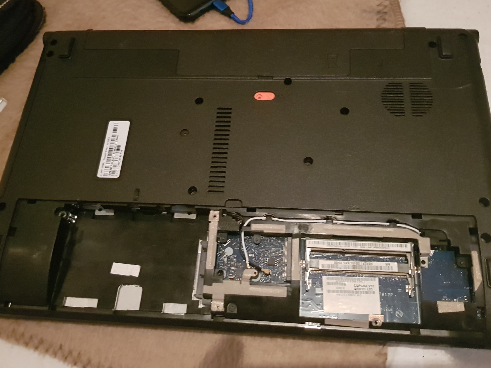 Alaplap proci működik. Ház elemek nagyrésze felhasználható, de a balos zsanér lefogató törött.