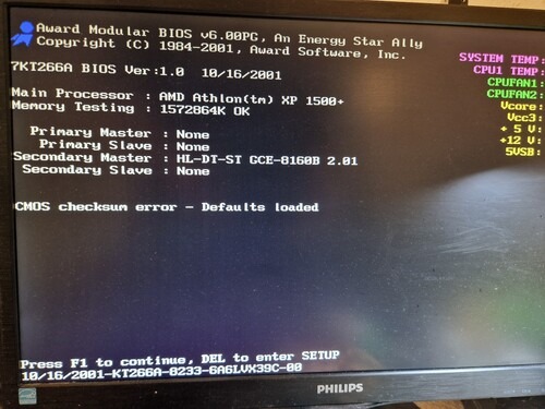 Acorp7KT266A, Atholn XP 1500+, 3x512 MB Ram