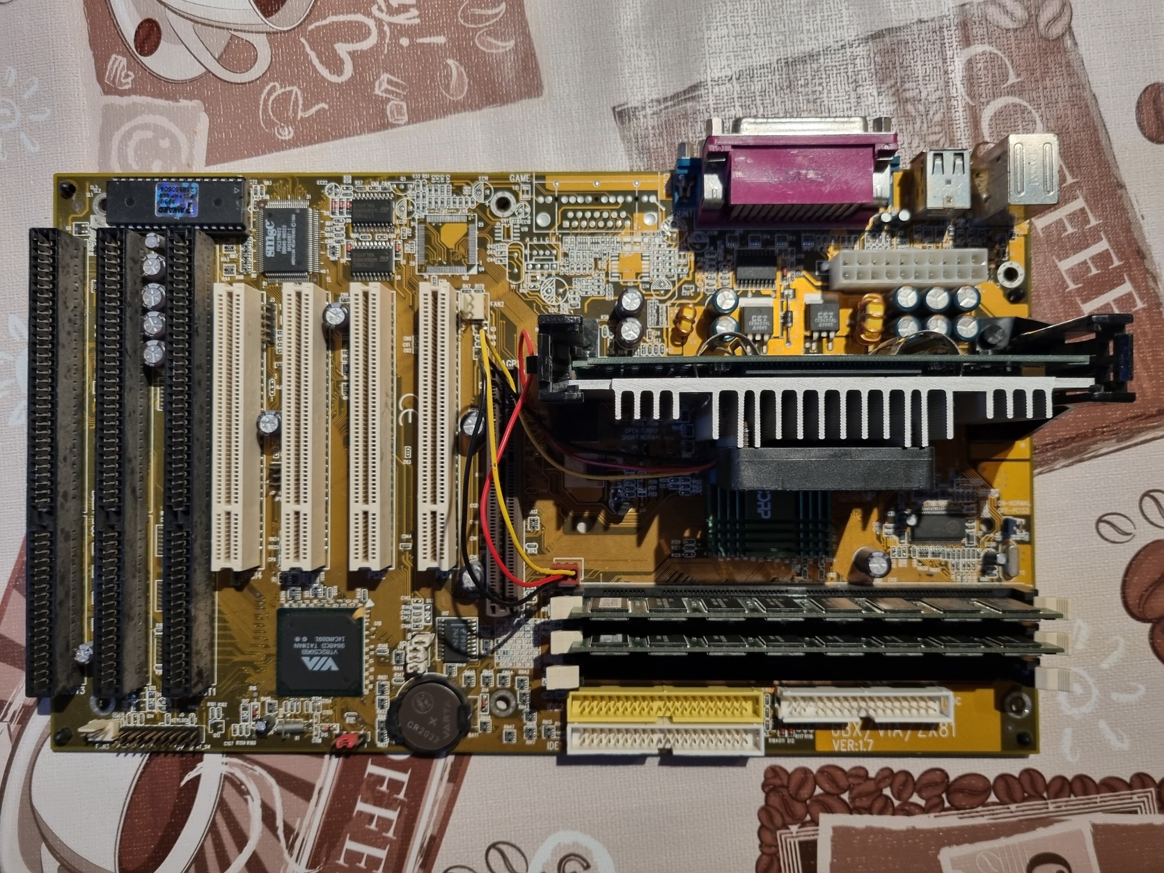 Eladó a címben is szereplő alaplap SL3BC Celeron processzorral, 256 MB rammal.