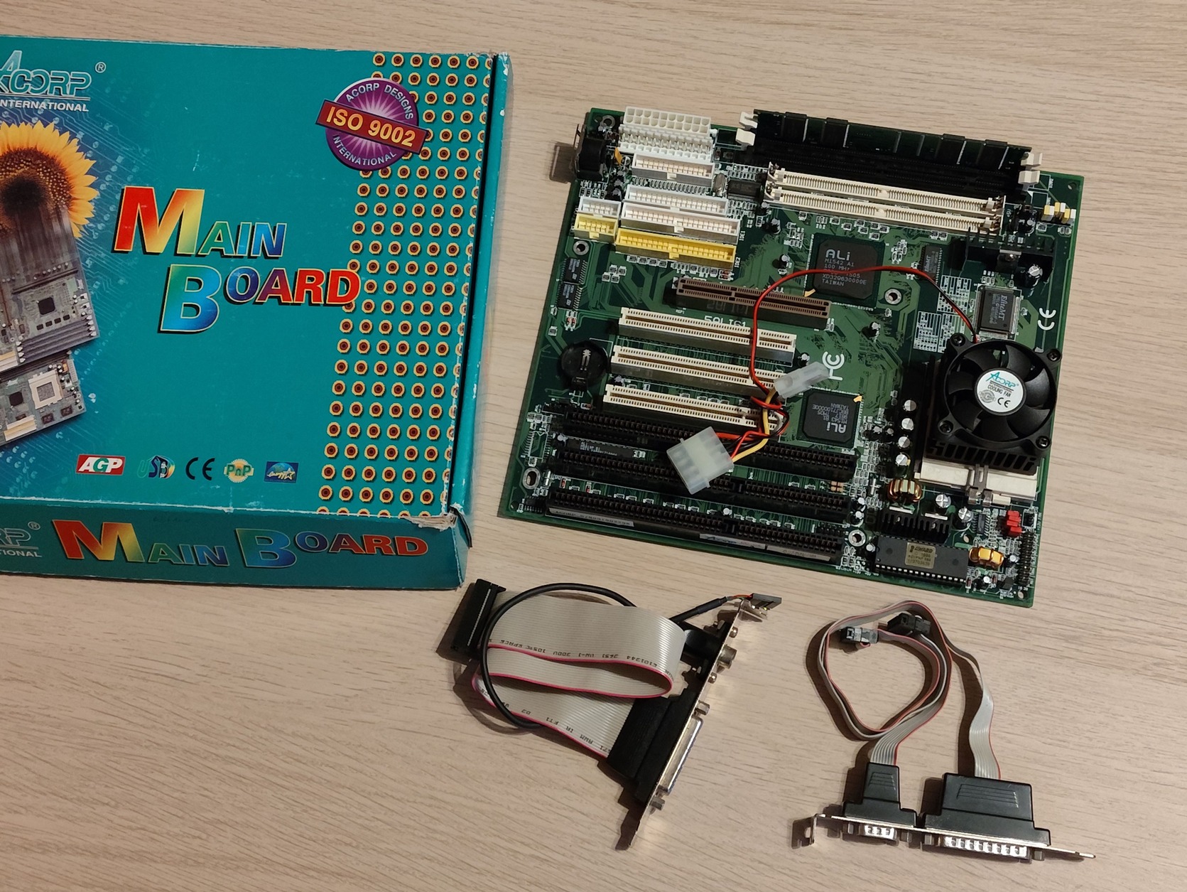 Tesztelt jól működő Acorp alaplap dobozával, hátlapi kivezetésekkel csendes Acorp Cpu hűtővel. 166 mhz intel procival. 64 mb Sd rammal. Képek szerinti nagyon szép állapotban.