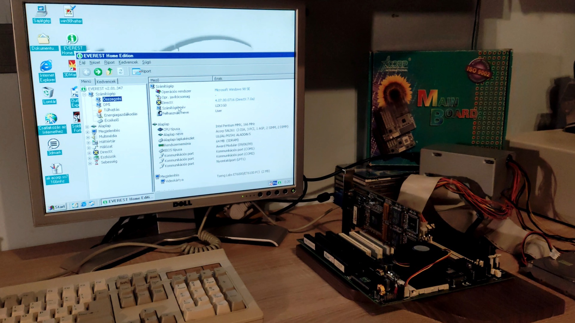 Tesztelt jól működő Acorp alaplap dobozával, hátlapi kivezetésekkel csendes Acorp Cpu hűtővel. 166 mhz intel procival. 64 mb Sd rammal. Képek szerinti nagyon szép állapotban.
