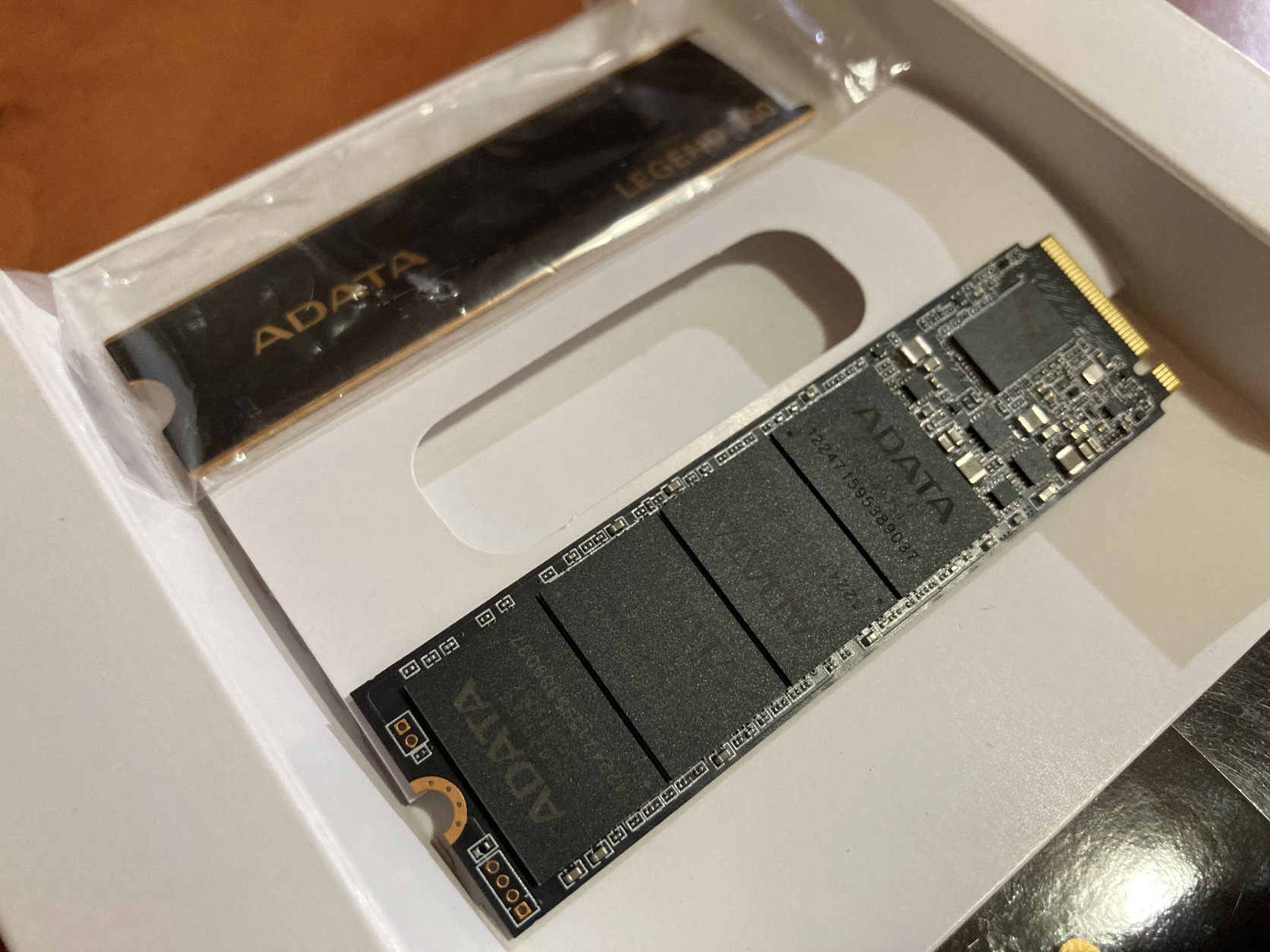 Fotót magam készítettem az SSD-ről és csomagolásáról. A hűtőbordán még a gyári fólia van.