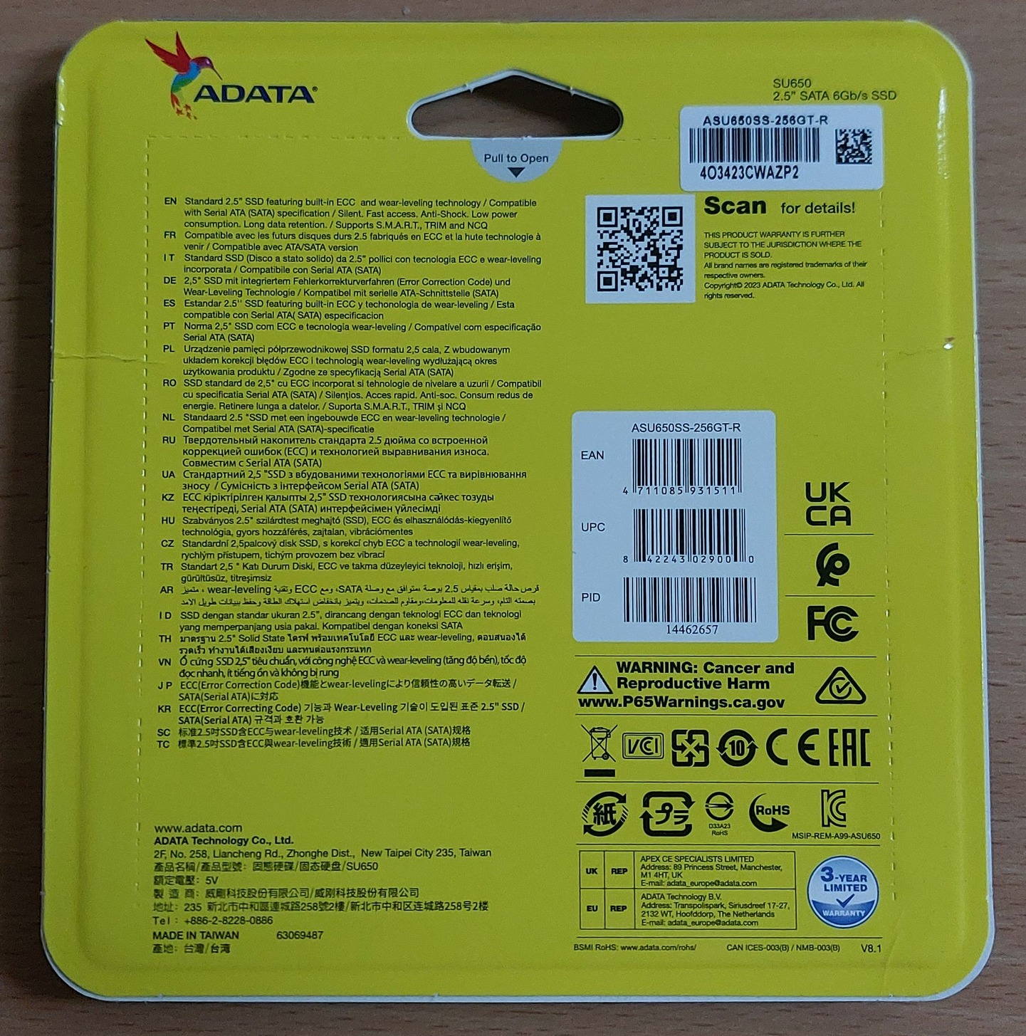 ADATA SSD SU650 2,5" 256GB