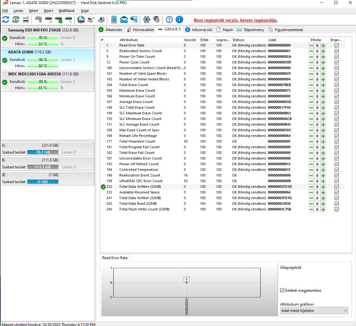 Eladó lenne egy Adata SU800 120gb 100/96 ssd-e hd sentinel értékkel.