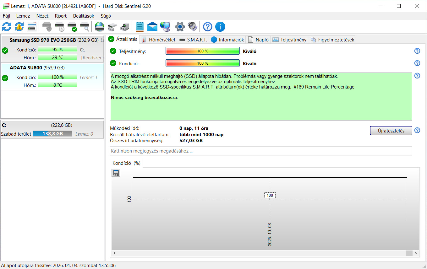 ADATA SU800 Ultimate 1TB SSD (kevesebb mint 1 napot használt, 100/100) (2 db)