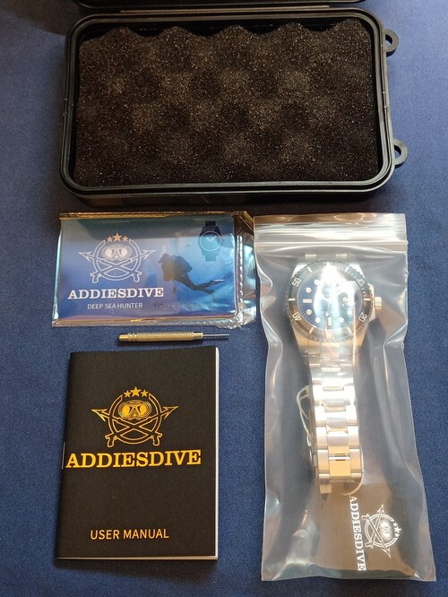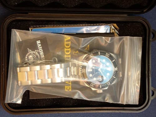 Eladó full fóliás, vadonatúj Addiesdive Deep Sea Hunter - Submariner stílusú búváróra. Ez a legsokoldallúbb, lakk fekete számlapos, fekete kerámia lünettás változat. Ár/érték arányban talán a legjobb kvarc búváróa, messze veri a szintén népszerű Casio Duro-kat, mind a specifikációk, mind a megjelenés szempontjából.