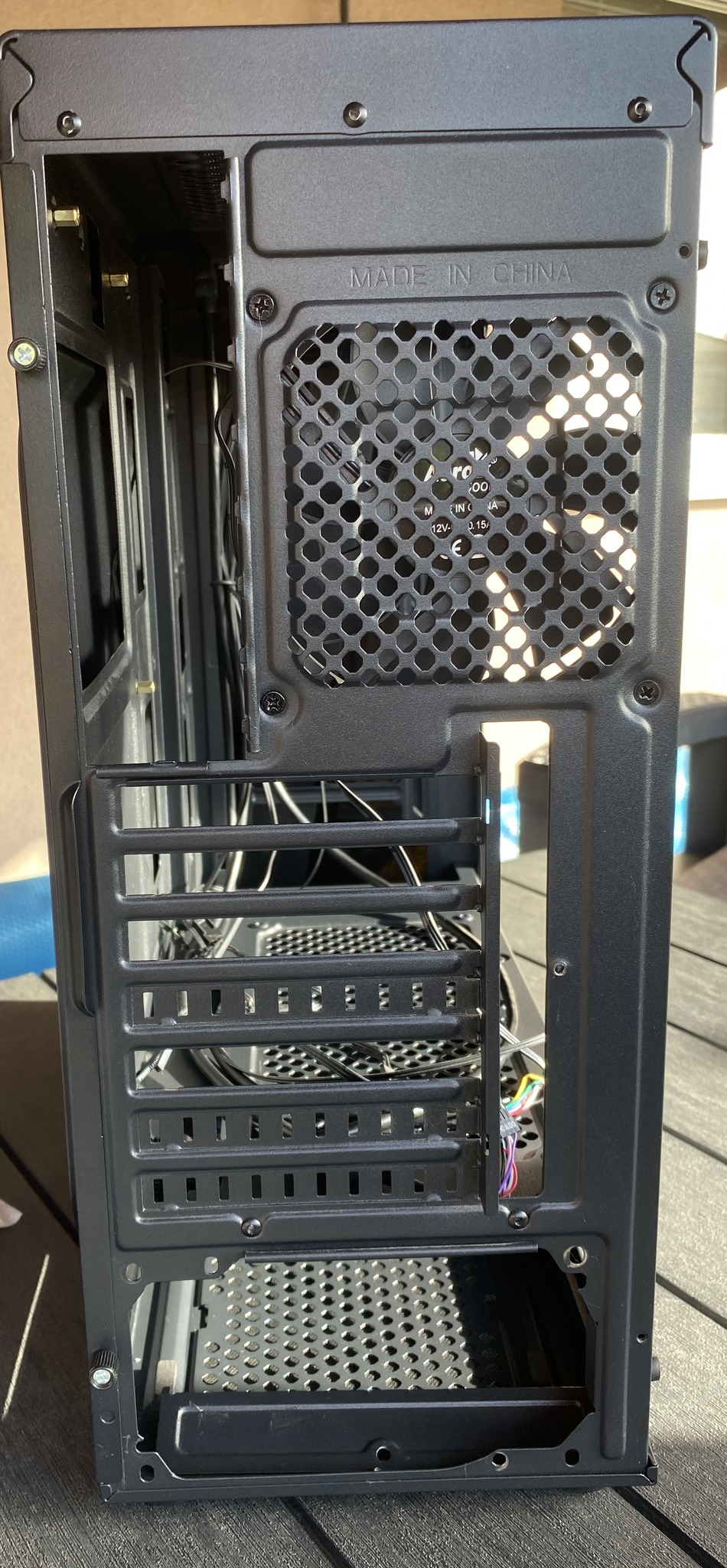 A hátsó ventilátor kattog.