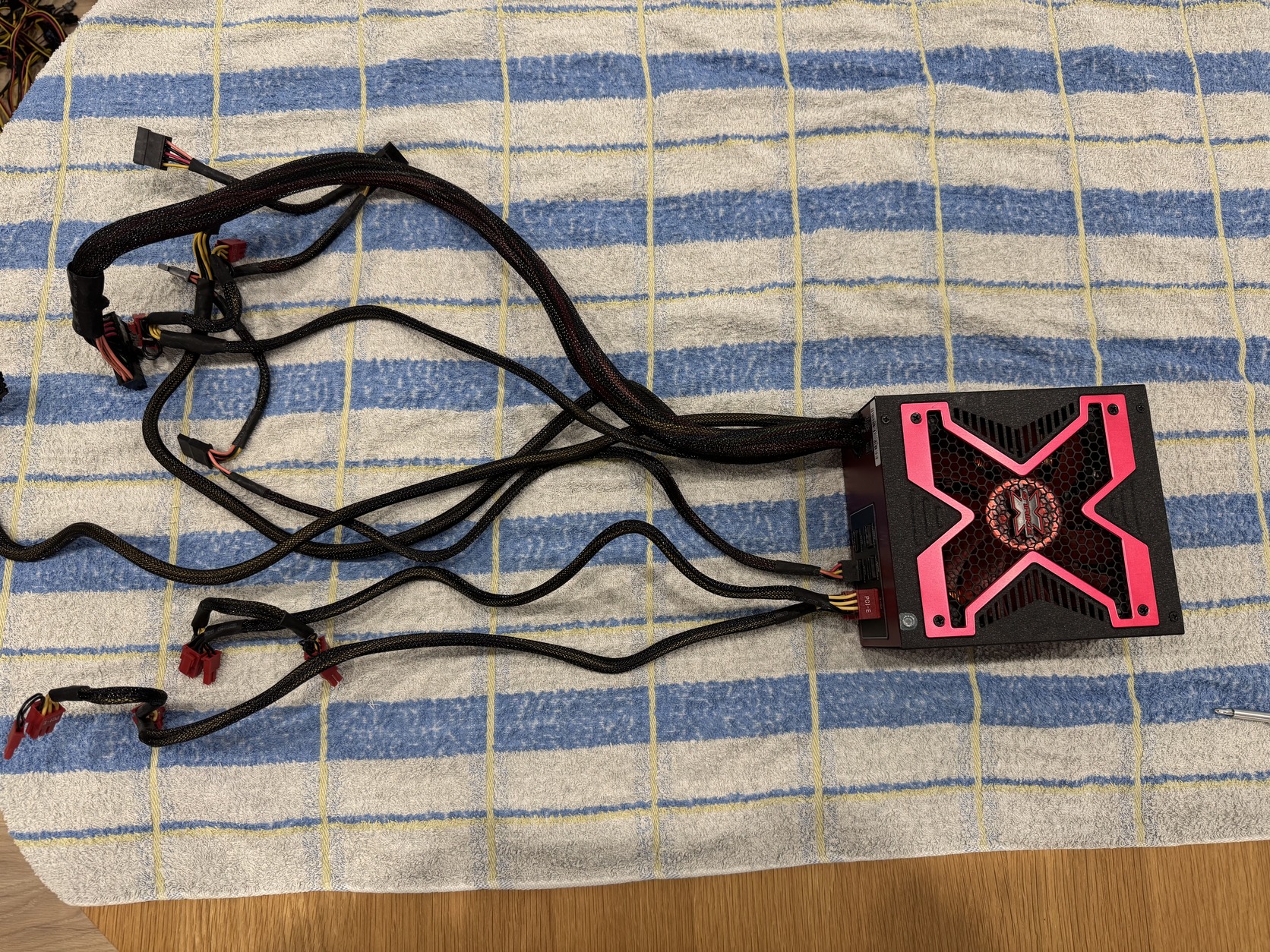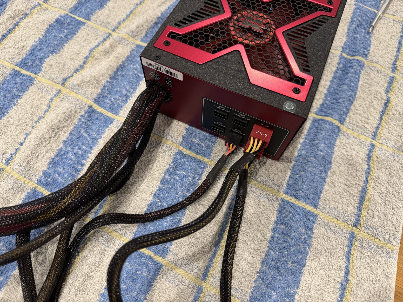 A táp moduláris részéhez 2 db 2x8pin PCIe kábelt és egy a képen is látható sata kábelt adok.