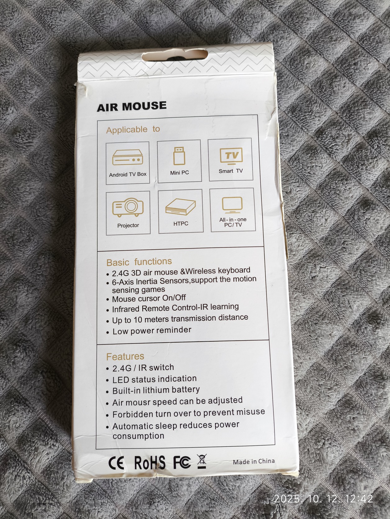 Air Mouse, IR távirányító és billentyűzet, beépített akkuval