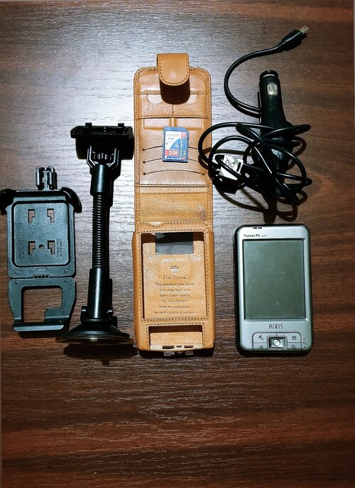 ladó a képen látható PDA,GPS Piel Frama tokkal és 2GB memóriakártyával.
