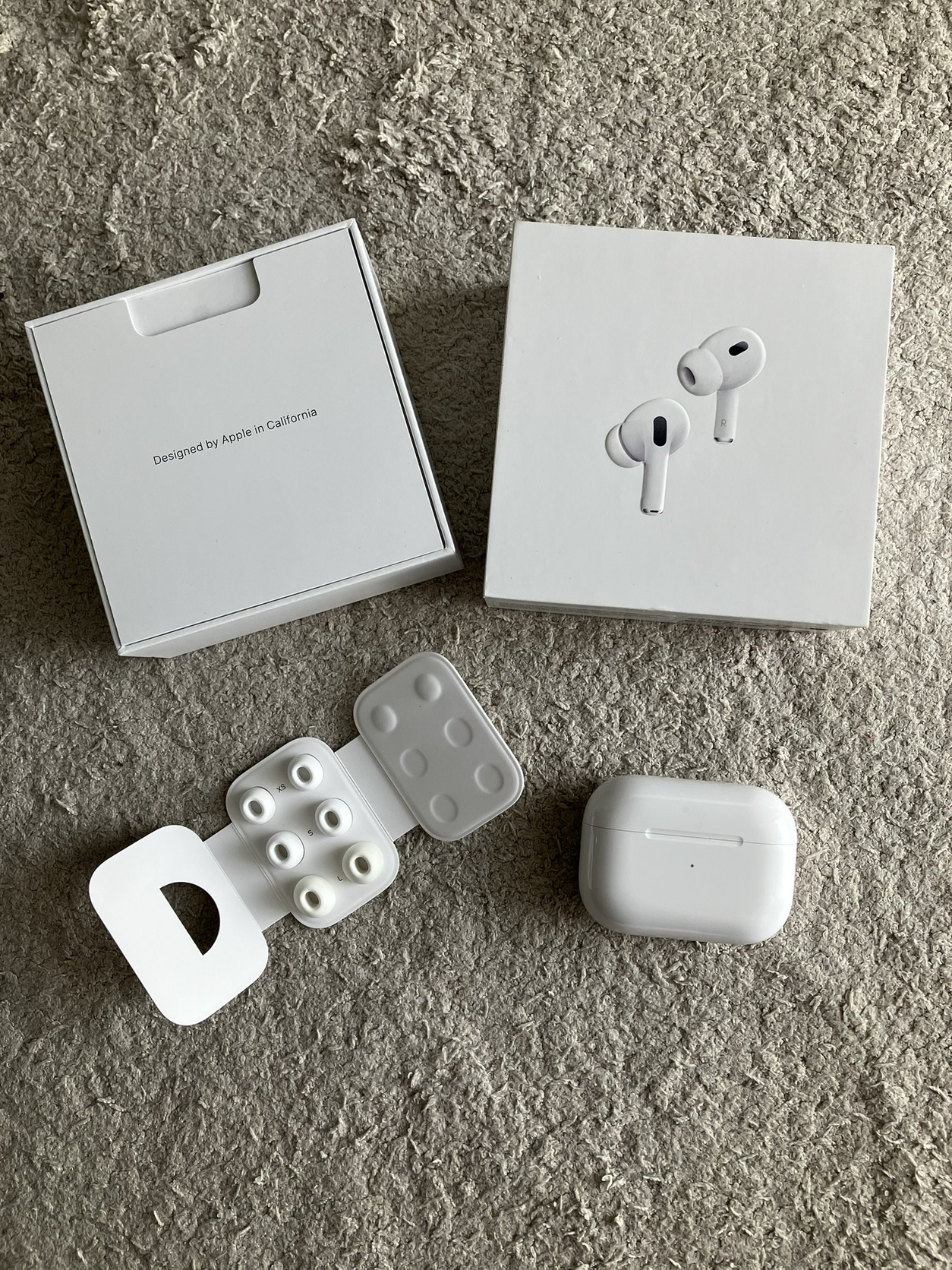 Eladó Airpods Pro 2 USB-C töltőtokja. A gumiharangokból az L méret nélkül, tehát az XS, S és M, amit tudok adni hozzá. Tökéletesen működik, apró karcok vannak rajta használatból eredően.