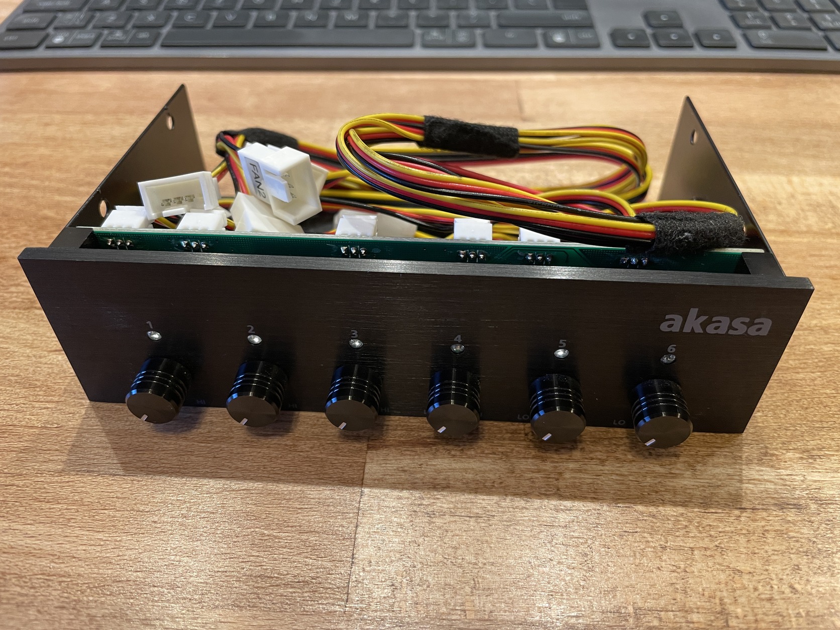 A front panel elegáns sima alumínium kivitellel 6 ventilátor fordulatszámát (sebességét) szabályozó 6 db. forgatógombbal rendelkezik. Úgy tervezték, hogy kezelje az összes ventilátort, mindegyik teljesítménye legfeljebb max. 20 W lehet. Különlegessége, hogy képes a fordulatszámot zérusra csökkenteni, hogy teljesen leállítsa a ventilátorokat. Természetesen a 3-pólusú és a 4 pólusú csatlakozókkal való kompatibilitás magától értetődik. A fordulatszám-szabályozást forgó gombokkal szabályozhatjuk, és a kék LED-ek mutatják a működést. A panel az 5.25" gépháznyílásba történő behelyezésre készült, és a szükséges csavarok is megtalálhatók a csomagban.