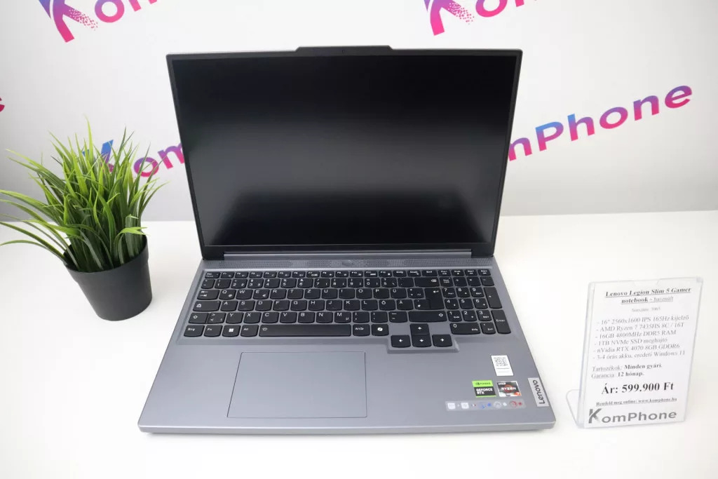 AKCIÓ! Lenovo Legion Slim 5 Gamer notebook - R7 7435HS 16GB RAM 1TB SSD RTX 4070 8GB GDDR6 WIN11