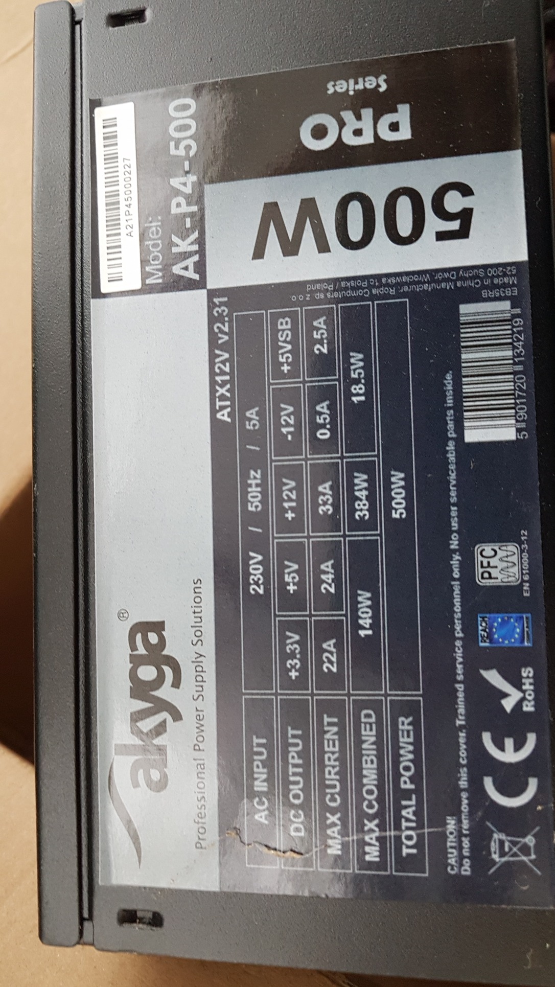 Alig használt Akyga AK-P4-500 fél moduláris tápegység eladó.