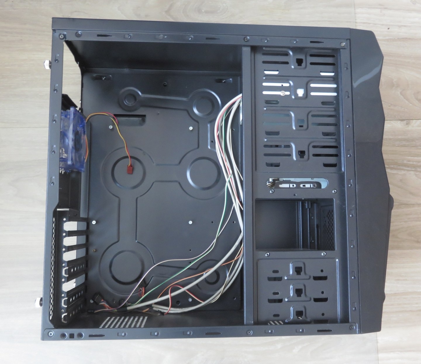 Itt-ott karcos/kopott, de vállalható állapotban (a képeknek megfelelően), alaplapi távtartók és csavarok vannak benne, valamint tartalmaz egy 80mm-es ledes ventilátort.